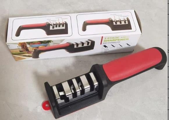 Upgrade your kitchen efficiency with this 3-Stage Knife Sharpener. Designed for all kinds of kitchen knives, it features coarse, fine, and ceramic sharpening options for precision results. The ergonomic handle and non-slip base make it safe and easy to use. Durable, compact, and essential for every home! Just Rs.699/- – sharpen your skills today!